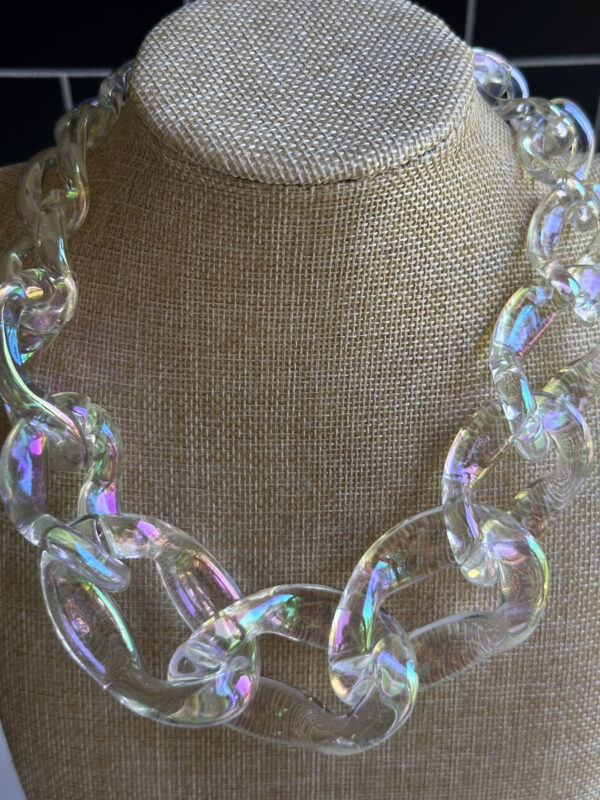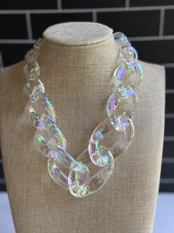 Ready to own the room without saying a word? Meet the Glow Getter Necklace — a bold, beautiful statement piece for women who don’t do boring. Made of oversized clear acrylic links with an irresistible iridescent shimmer, this necklace is light-catching, mood-lifting, and unapologetically fabulous.