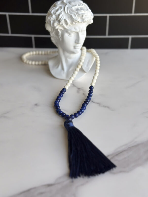 Get ready to drop anchor in serious style with the Nauti-Navy Necklace—a bold beauty just begging to make waves. At 37 inches long, this head-turner features smooth navy and crisp white beads, perfectly balanced for that effortless “just stepped off the yacht” vibe. And let’s talk about that 4-inch navy tassel—flirty, fabulous, and full of dockside drama.